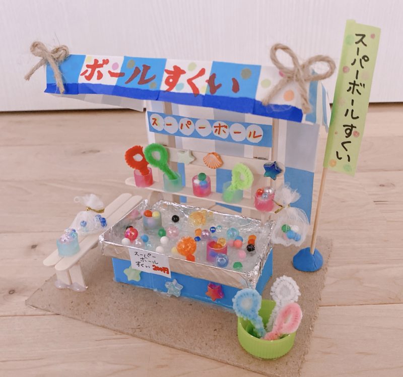 スーパーボールすくい ミニチュア屋台の作り方 夏休みの子供の工作におすすめ。家にあるもので簡単工作♪お祭り屋台シリーズ雪見日和。
