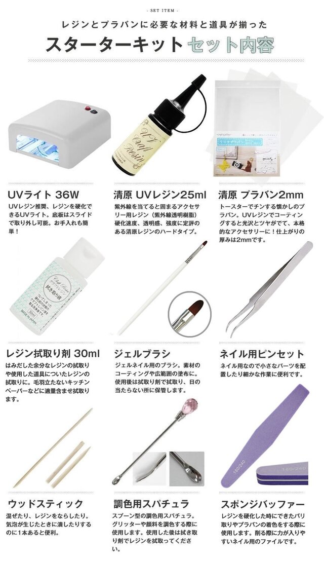 レジンとプラバンでつくるアクセサリーキット UVライト36W付iichi 日々の暮らしを心地よくするハンドメイドやアンティークのマーケットプレイス。
