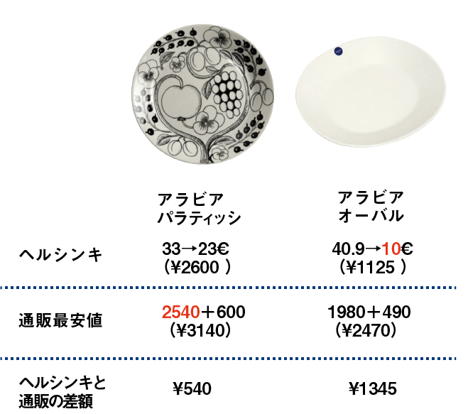フィンランドでイッタラ・アラビア購入、日本よりどのくらい安い。