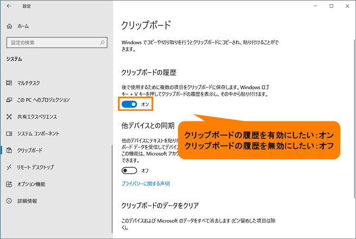 クリップボードの履歴」有効 無効にする方法<Windows 10>サポートdynabook ダイナブック公式。