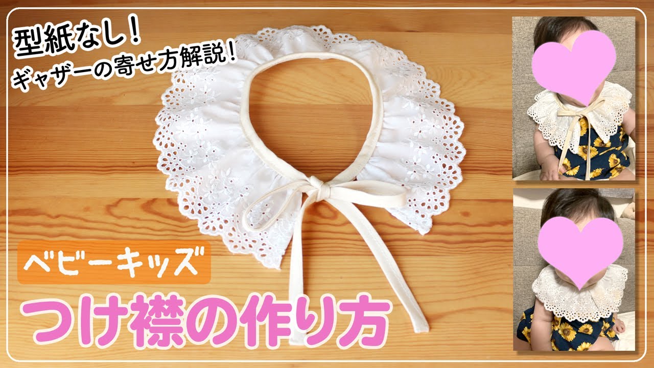 つけ襟の作り方 型紙不要!ギャザーの寄せ方解説!ベビーキッズサイズ、調整可能。