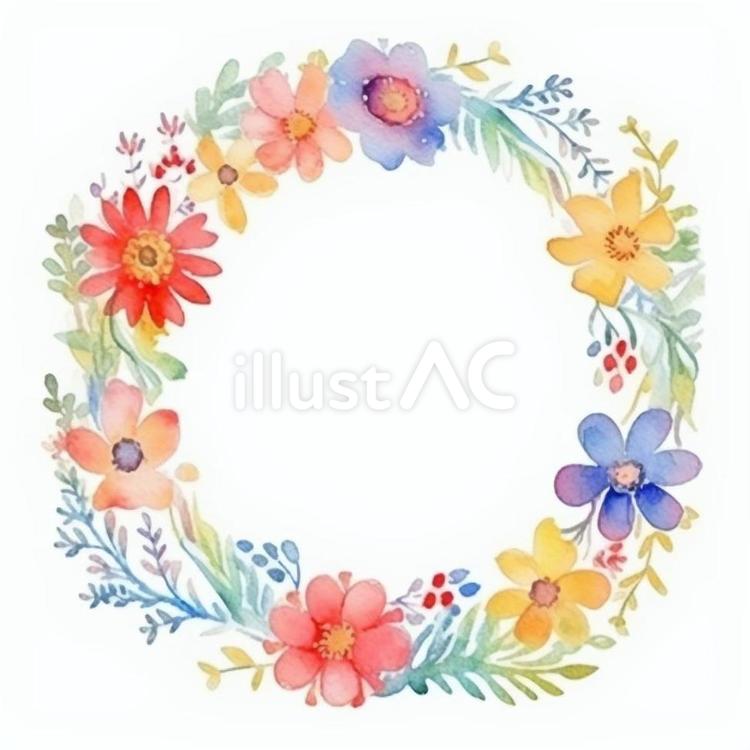 水彩風の花と葉の丸型フレームイラスト - No: 23812076無料イラスト・フリー素材なら「イラストAC」。