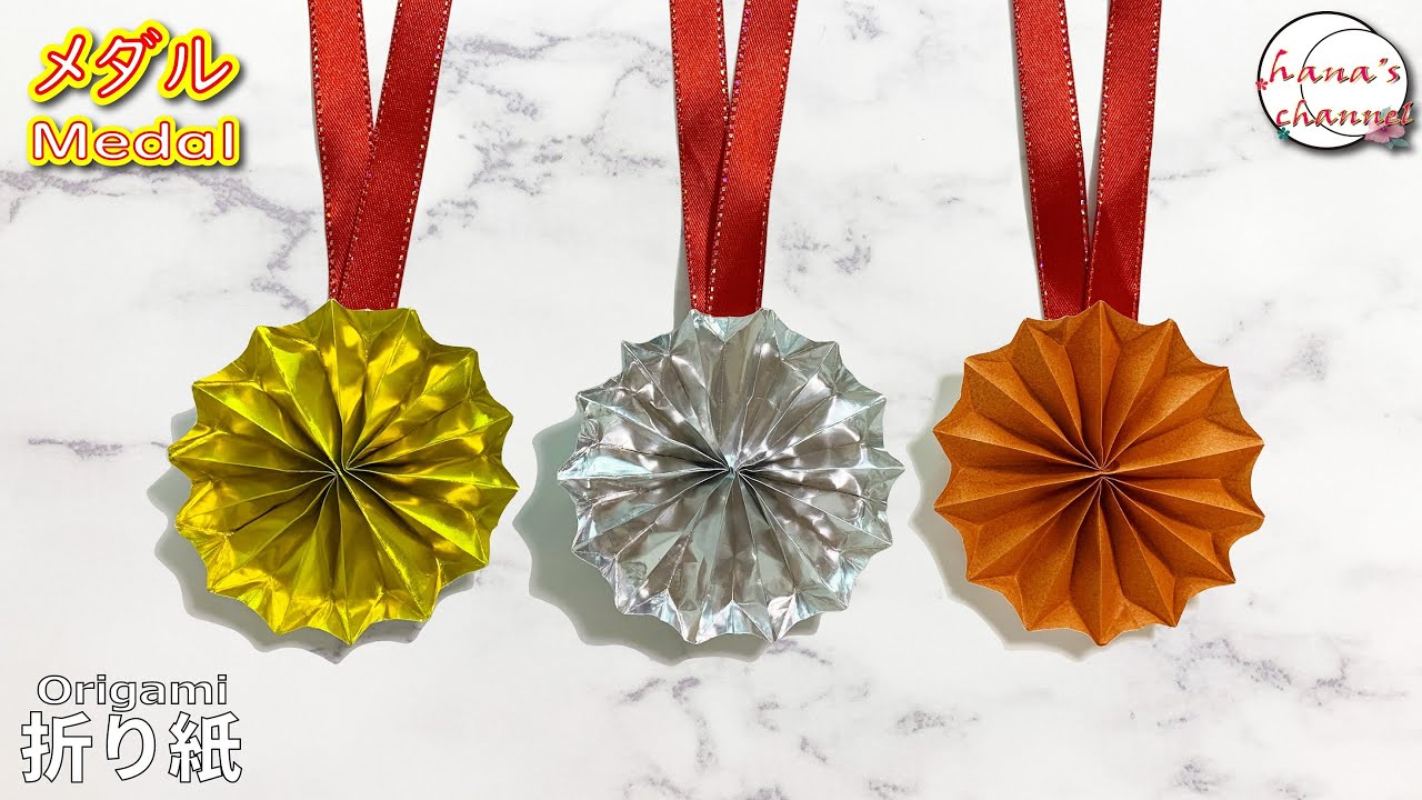折り紙1枚 メダル🥇How to make paperMedal メダル ロゼット medal पदक médaille オリンピック 메달 簡単 折り方 おりがみ origami 摺紙 作り方。
