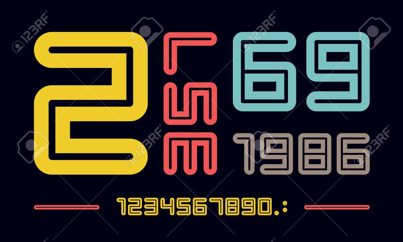 数字フォント。数字と数字のスポーツフォント。幾何学的な通常の余分な太字 の丸みを帯びたアウトライン番号。デザイン、クリエイティブなタイポグラフィ、ポスター用の強力なスポーツフォント。ベクトルイラストのイラスト素材・ベクターImage 132407652。