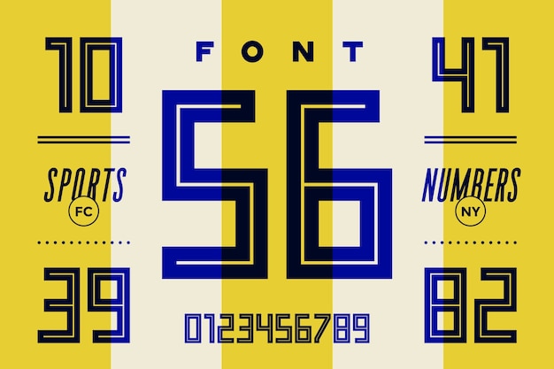 数字フォント。数字と数字のスポーツフォント。幾何学的な通常の太字フォントPremiumベクトル素材。