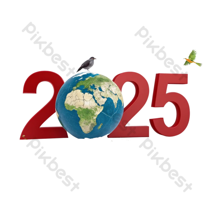 地球儀付きの大きな太字フォントで数字 2025 イラストPNG 無料ダウンロード - Pikbest。