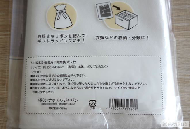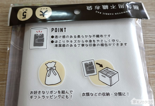 100均・梱包用不織布袋の商品一覧。サイズとセット枚数 ダイソーとセリアで100円。