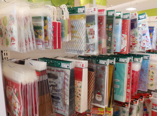 セリアのクリスマスラッピング袋やシール、カード、包装紙を調査。