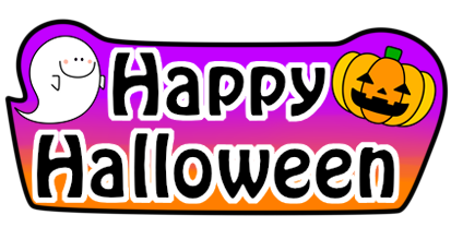 おばけ&かぼちゃ入りハロウィンロゴフリー素材かくぬる素材工房。