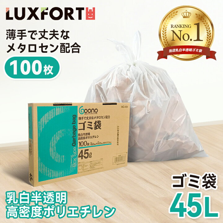 楽天市場 ゴミ袋 45リットル ゴミ袋 半透明 シャカシャカ。破れにくいメタロセンポリエチレン素材 を採用、環境に優しい!収納に便利な箱入りタイプで使いやすい。高密度ポリエチレン素材で丈夫かつ大容量!100枚入りで業務用にも家庭用にも対応。 :ラクスフォート。