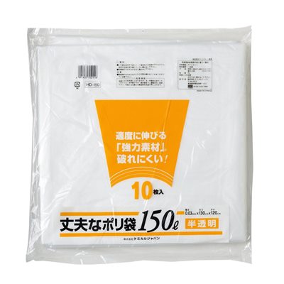 ケミカルジャパン ゴミ袋 厚くて丈夫 150L 10枚 半透明 シャカシャカタイプ 横130㎝ 縦120cm 厚さ0.03mm 破れにくい ごみ袋丈夫な ポリ袋 HD-150。