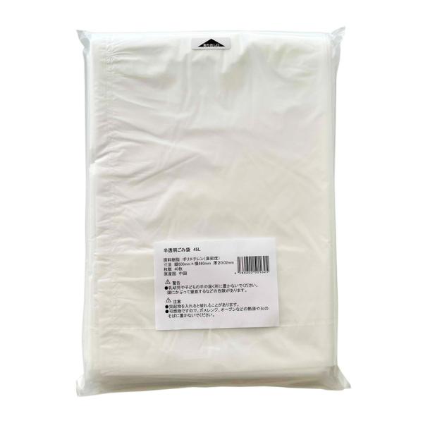 ゴミ袋 45リットル ゴミ袋 半透明 シャカシャカ。破れにくいメタロセンポリエチレン素材 を採用、環境に優しい!収納に便利な箱入りタイプで使いやすい。高密度ポリエチレン素材で丈夫かつ大容量!100枚入りで業務用にも家庭用にも対応。 ゴミ袋透明 45L 厚さ0.024mm 業務。