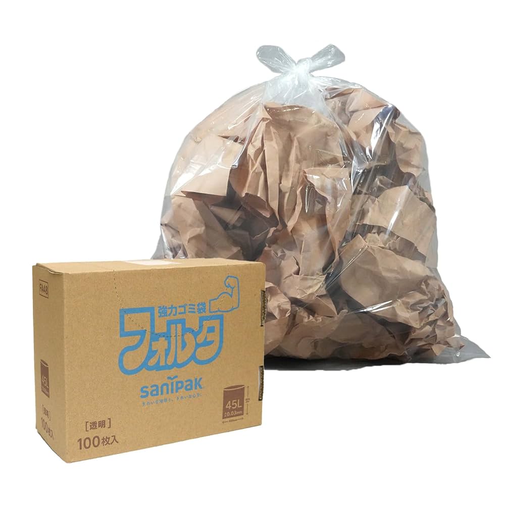 Amazon.co.jp: フォルタ ごみ袋 透明45L × 100枚箱入り 0.030mm 破れにくい 厚手 しなやか素材 で結びやすい&重量物・突起物に強い つるつる素材業務用 家庭用: ドラッグストア。