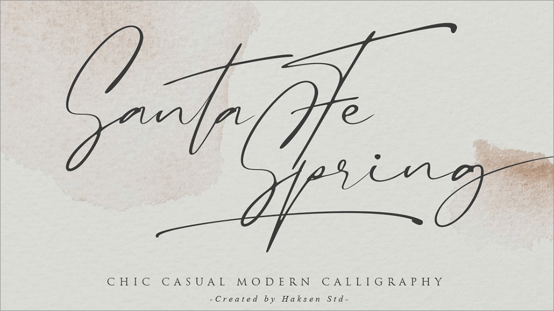 フリー素材ダイナミックで勢いのある筆跡のカリグラフィーフォント。大きく張り出した曲線が特徴的。