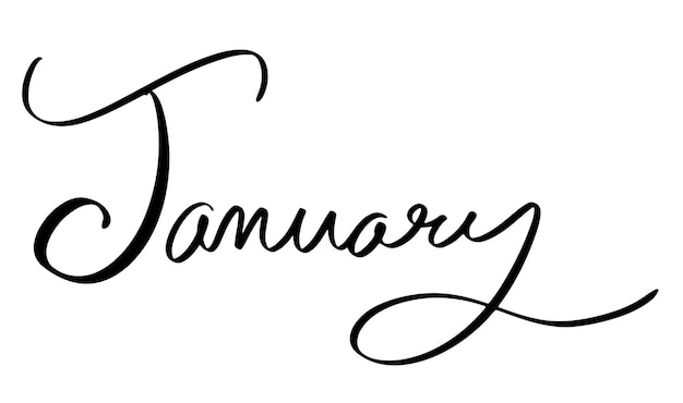 1月 カリグラフィー 手書き フォント テキスト 黒色 白色 イラスト ベクトル デザイン カレンPremiumベクトル素材。