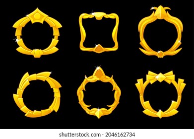 金色のフレームアバター、UIゲーム用のロイヤルな異なるアイコンテンプレート。グラフィックデザイン用のビンテージ金色の図枠を設定します。」のイラスト素材2046162734Shutterstock。
