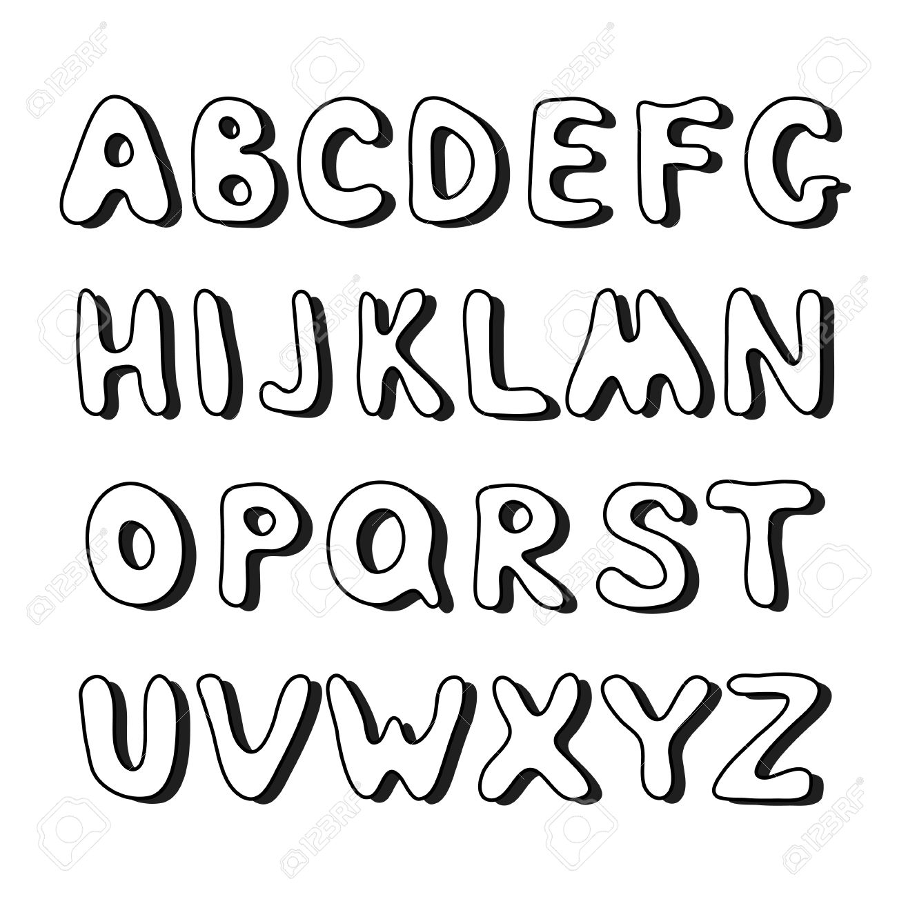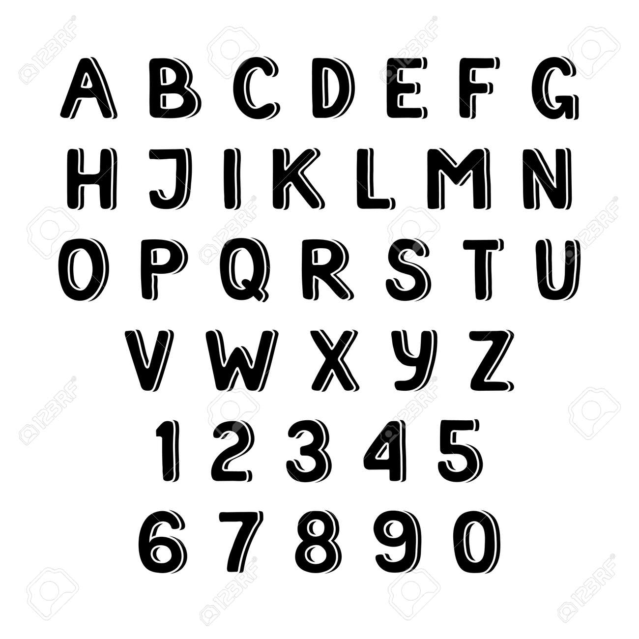 手描きのサンセリフ体アルファベット。レトロなスタイルで影付きの文字。のイラスト素材・ベクター Image 89139601。