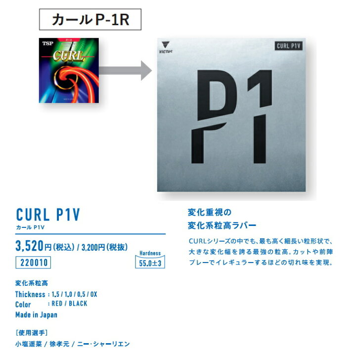 Victas > ラバーカール P1V --卓球専門オンラインショップ タッキュージャパン。