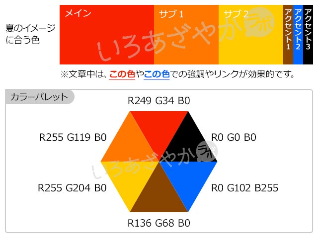 赤 夏を表現する配色中小企業のホームページ・ECサイトの改善、企画デザインの「いろあざやかラボ」。