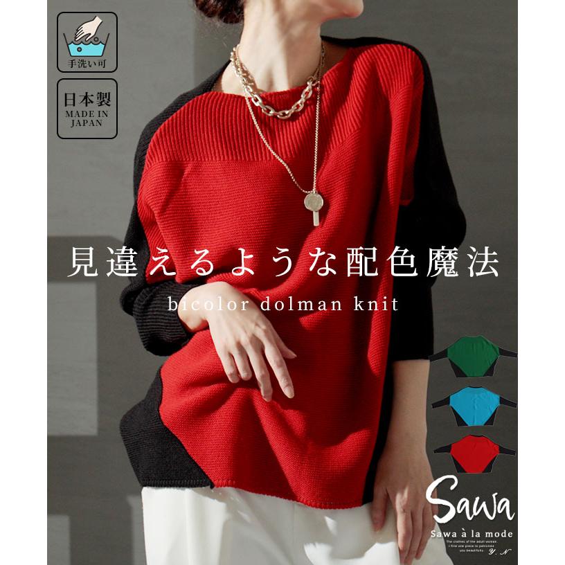 Sawa a la mode レディース トップス ニット セーター ドルマン 配色 日本 赤 緑 青 秋 冬 40代 50代 60代 サワアラモードsawaalamode otona 大人 kawaii 可愛い 洋服 かわいい : ALAMODE アラモード - 通販 -。