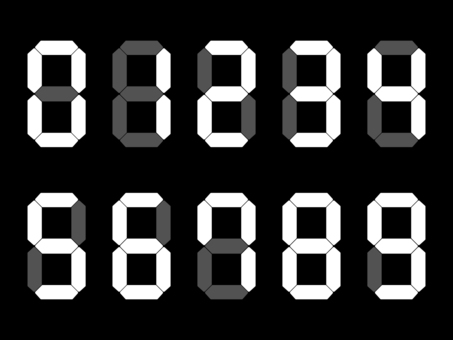 7セグフォント デジタル数字 白文字:イラスト無料。