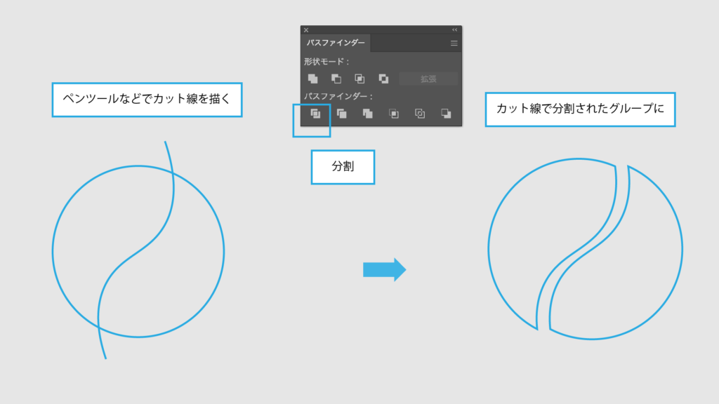 パスファインダー分割で文字や図形の一部をカット Illustrator。