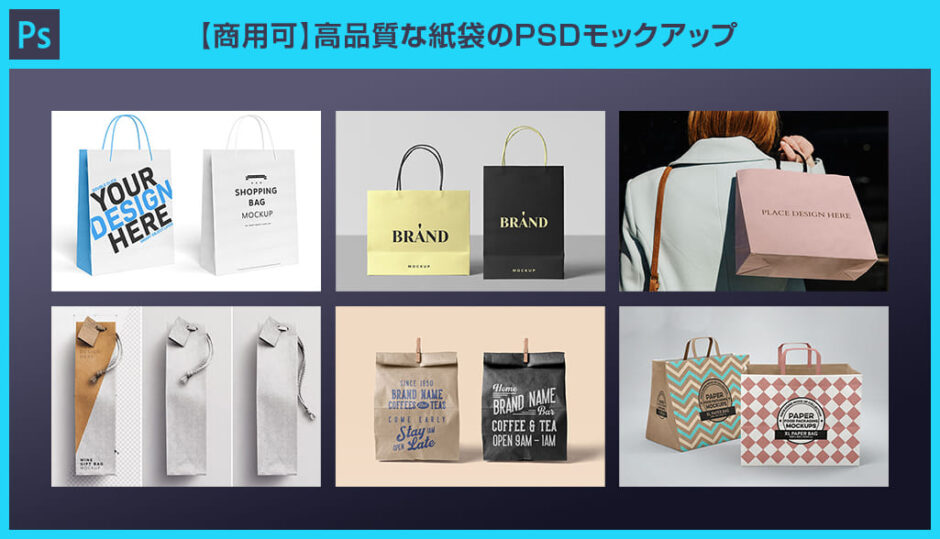 商用可 高品質な紙袋 ペーパーバッグ のPSDモックアップ25選S.Design.Labo。