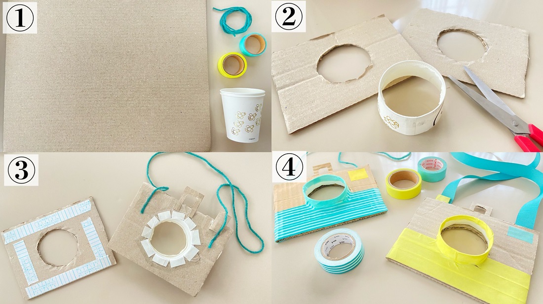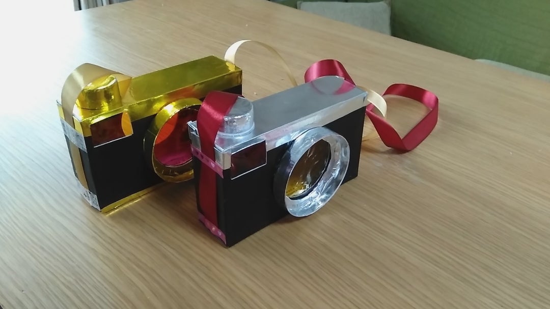 空き箱で「おもちゃのカメラ」100均材料・廃材で手作りおもちゃ 作り方にじいろランド note園。