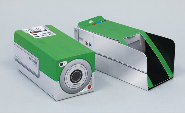 カメラの形をしたダンボール工作キット「カゾクッテ」学研ステイフルから登場変デジ研究所。