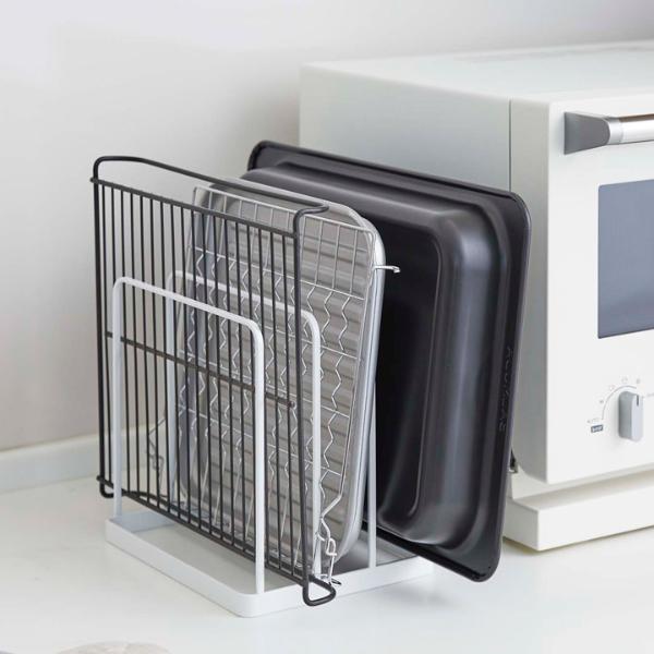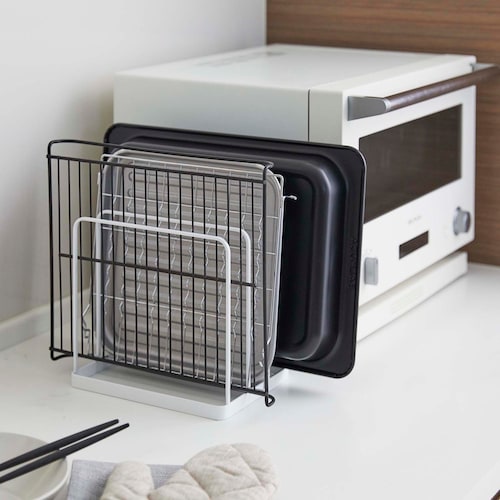 楽天市場 レビュー特典! tower山崎実業 トレースタンド タワー公式 ホワイト ブラック おしゃれ スタンド ホルダー 収納 来客トレー お盆 天板 天麩羅バット 揚げ物用 バット 替えプレート オーブントレー 板 網 縦置き 縦 隙間収納 整理 シンプル 5052 5053。