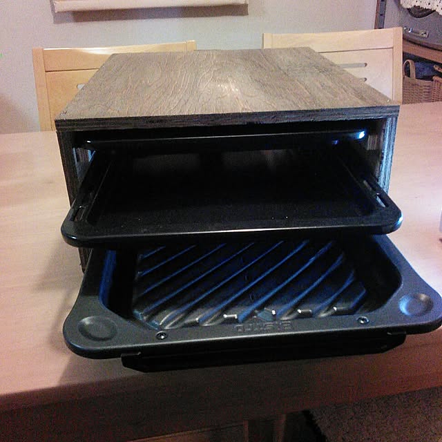 オーブンの天板置き場をDIY‼️ みんな天板どこにしまってる? 時々しか使わないんだけど、しまい込むと出し入れするのが大変で 😅こうなったらガッチリネジで固定だ!って感じで取り付けました。 収まり良くて気に入ってます☺️オーブン天板収納オーブンオーブン。