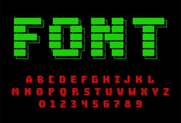 古いコンピュータフォント。 8ビットスタイルのレトロなアルファベット。Premiumベクトル素材。