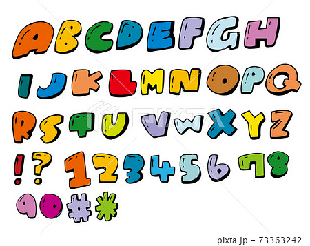 アルファベット 数字 文字 手描き ポップ 記号 カラフルのイラスト素材73363242- PIXTA。