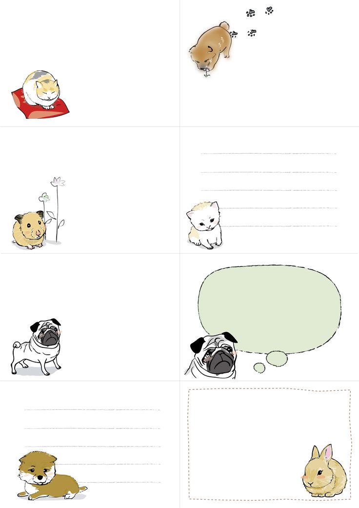 メモ用紙のテンプレート「動物 A4サイズ8等分 」ダウンロードかわいい無料イラスト 印刷素材.net。