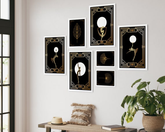 アールデコ調の女性用ギャラリーウォールアートプリント、ヴィンテージゴールドエフェクトポスター7枚セット、インテリアデザインに最適、ユニークなギフト -Etsy 日本。