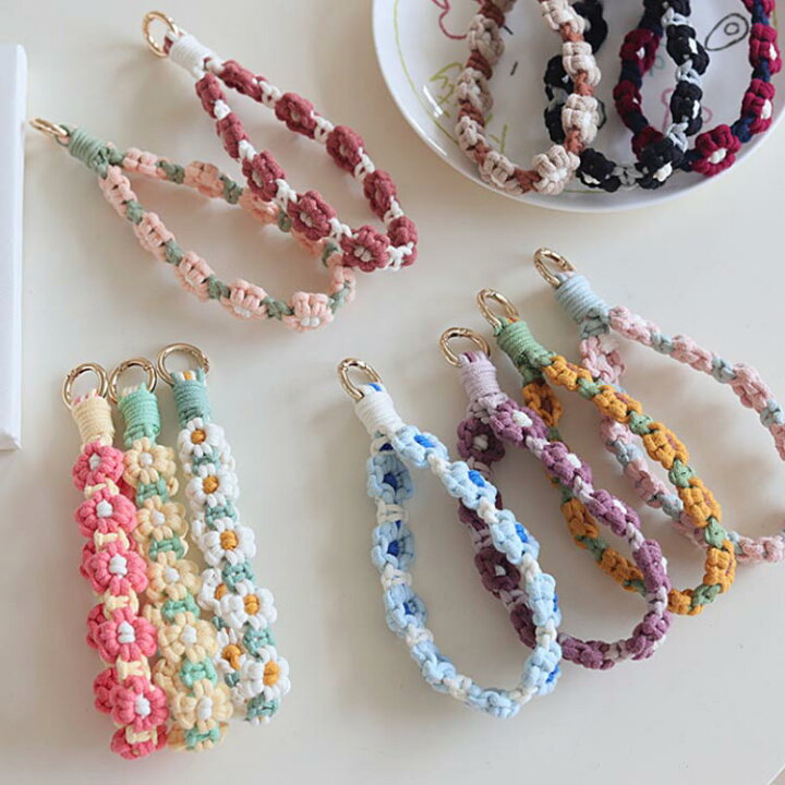 楽天市場フラワー 手作り フラワー編み スマホストラップ カラビナ 携帯ストラップ ストラップホルダー ハンドストラップ 花 ストラップ 手首 ストラップ 編み 推し活 落下防止 全機種対応 送料無料 手編み ハンドメイド スマホ : smilife。