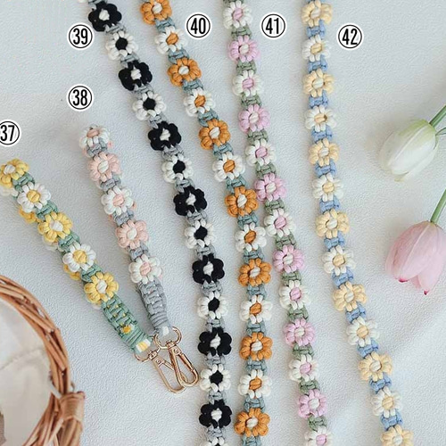 リンネル掲載☆ マクラメ スマホショルダー スマホストラップ ショルダーストラップ マクラメスマホショルダー マクラメショルダー お花 大人可愛いマクラメストラップ 長さ調節機能付き - atelier-mymminne byGMOペパボ 国内最大級のハンドメイド・手作り通販サイト。