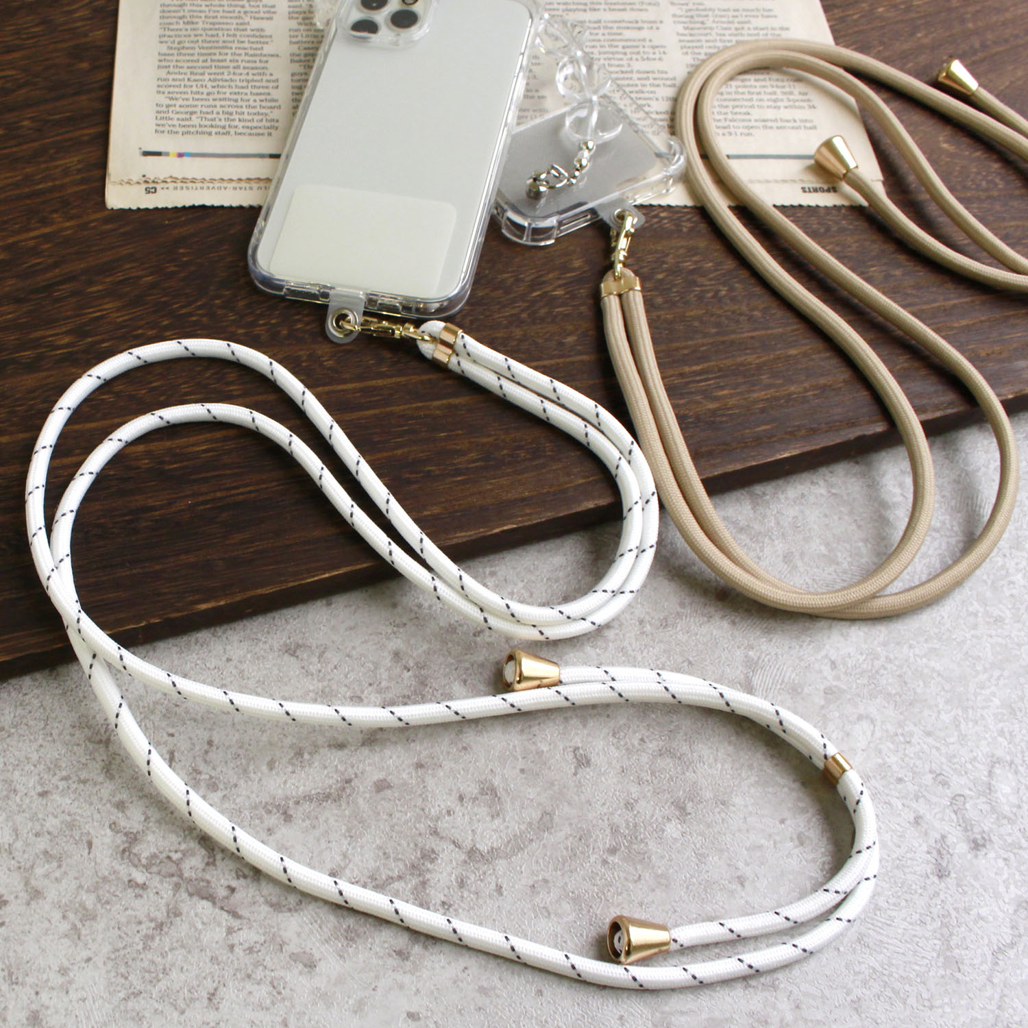 HIRASUKEスマホショルダーストラップ 透明×編む :セミオーダー: ネックストラップ SUKU 通販 17085153Creema クリーマ。
