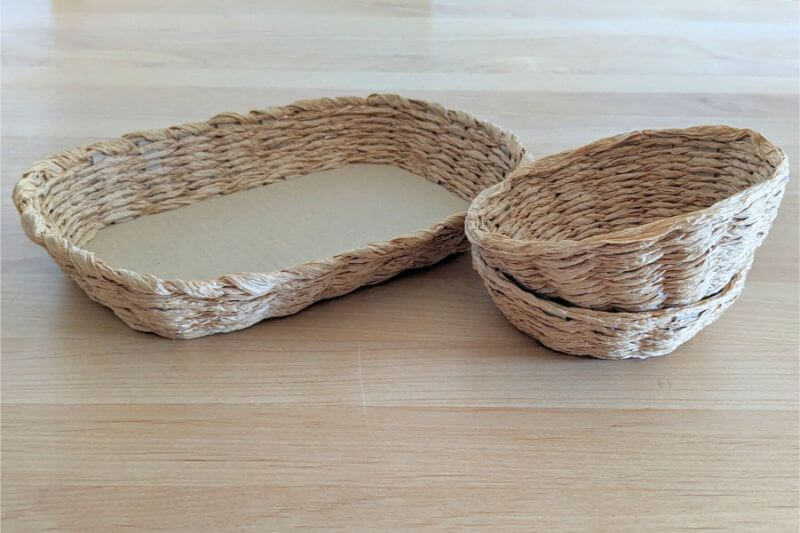 紙ひもと段ボールを使ってバスケットづくり。ごっこ遊びやインテリアにも使えます。クラフポ。
