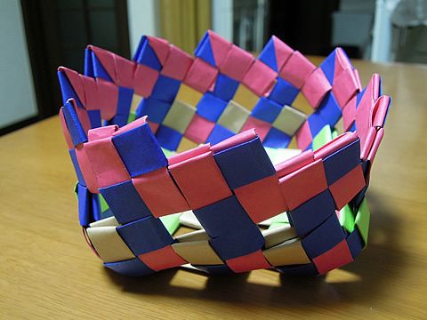 バスケットの折り紙 立体的なかごや入れ物の作り方かんたん工作・折り紙☆選り好み。