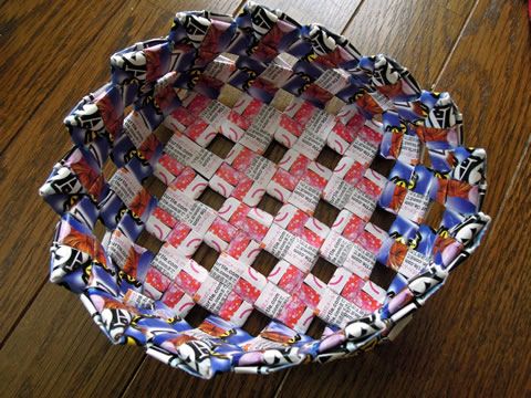 DIY 石畳み編みのカゴ❋広告チラシ手芸❋リサイクル 小物入れ 籠。