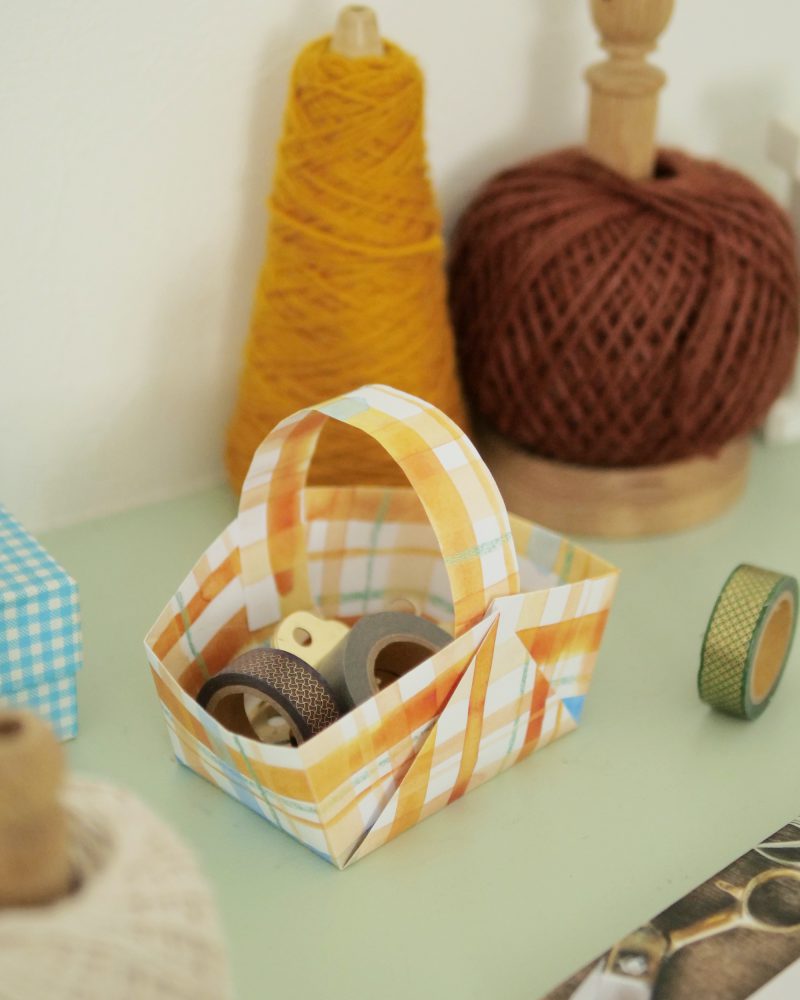 折り紙でカゴの作り方。取っ手付きの入れ物でかわいい箱 バッグ が完成。かわいい持ち手付きで小物入れやゴミ箱にもなります♪ママと子供のHappyLife。