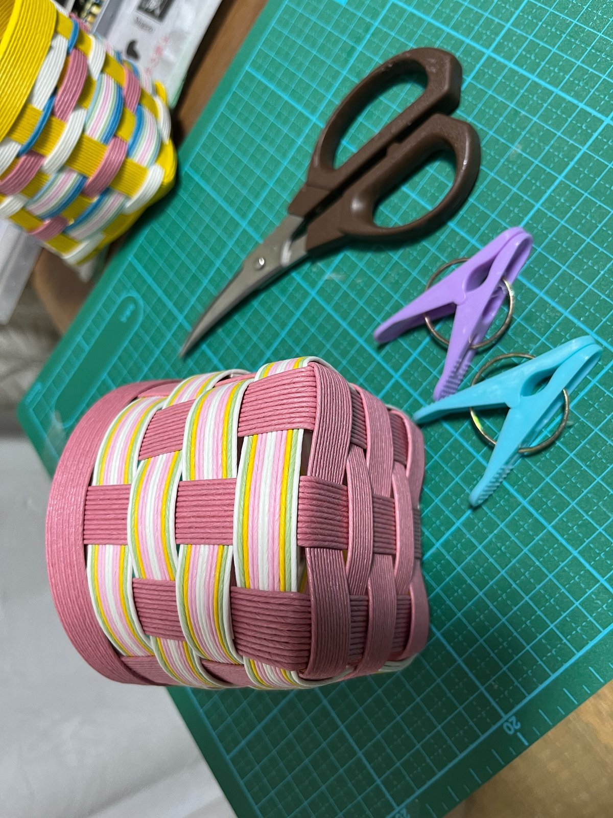 市松模様のかごの作り方DIY 紙バンドで簡単ハンドメイド。