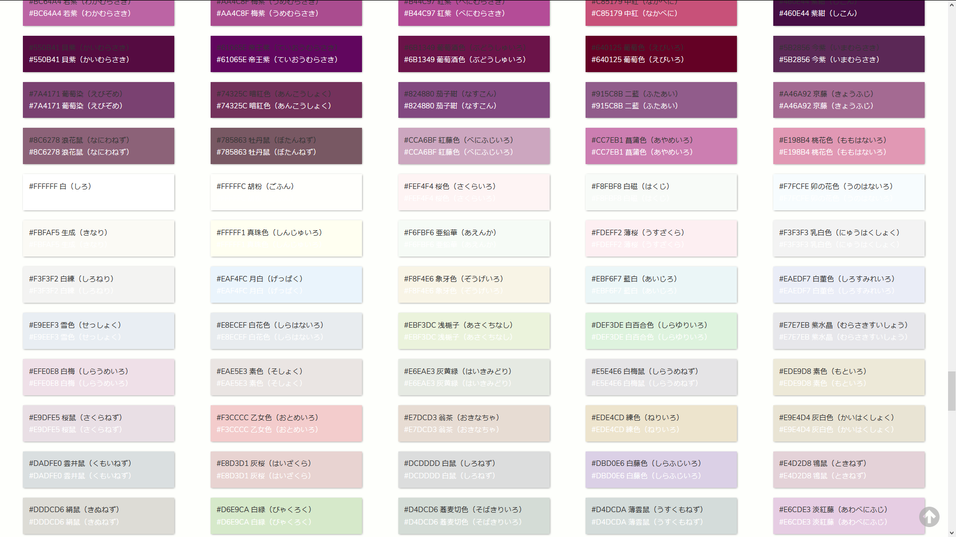 和色パレット:日本の伝統色をRGBで探す色名・読み・コードで、1文字でも簡単検索 SortもWebサイトに必要なことと道具。