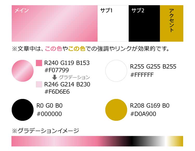 高級感のある色の組み合わせ ピンク カラーコードのrgbカラーパレット グラデーションイメージWebブランディングでホームページをデザインWebブランディングラボ。