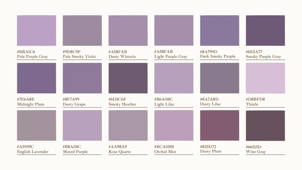 コピペOK 紫系くすみカラーの名称とカラーコード一覧ヒビラボ。