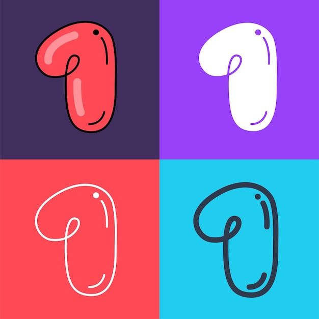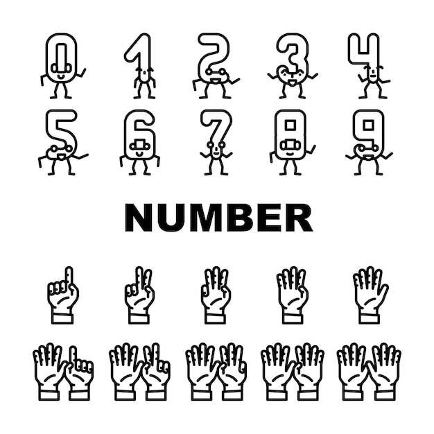 数字の文字かわいいアイコン セット ベクトル フォント面白い学校デザイン楽しい 1 つのアルファベット文字タイポグラフィー 3教育数字文字かわいい黒い輪郭イラストPremiumベクトル素材。
