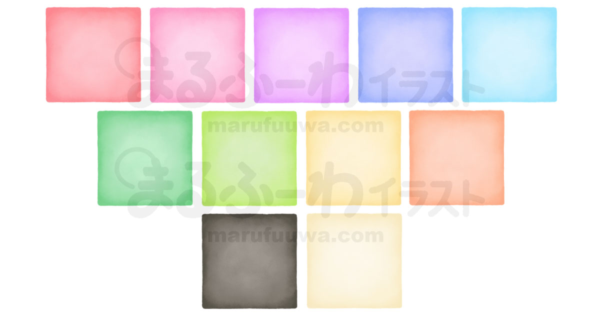 無料フリー素材 背景透過 水彩風 シンプルな手描きの四角のイラストかわいい無料素材♪まるふーわイラスト。