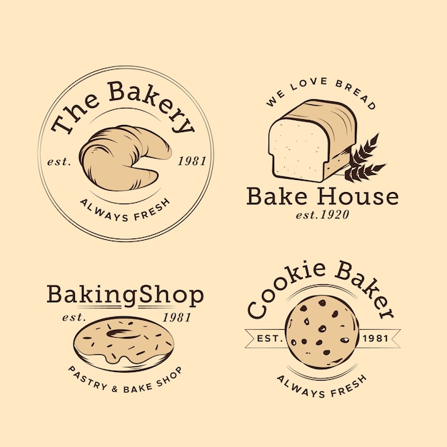 フラットスタイルでエレガントなパン屋のロゴコレクションPremiumベクトル素材。