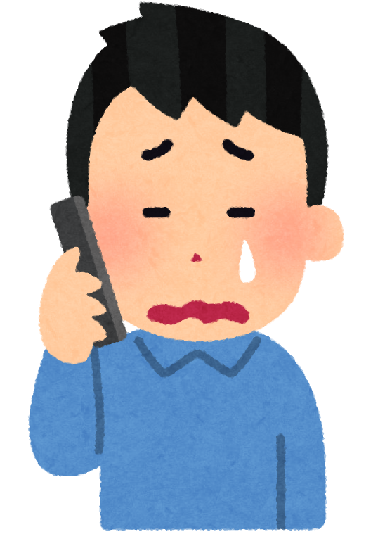 電話をする男性 困る のイラスト商用可・フリーイラスト素材ソコスト。